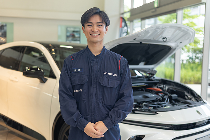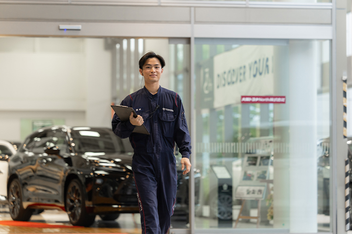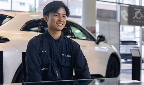 専門学校で部品名称や整備作業などの知識を身に付けてきたつもりでしたが、詳しいことまでわからず、店舗配属当初はお客様に聞かれても答えることができませんでした。